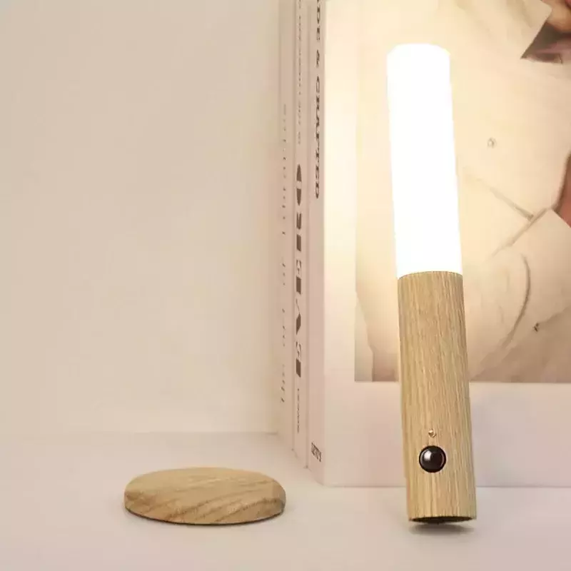 O bastão de luz se fixa magneticamente na base, proporcionando praticidade e facilidade de uso. E se preferir, você pode usar a luminária como apoio, deixando o bastão em pé.